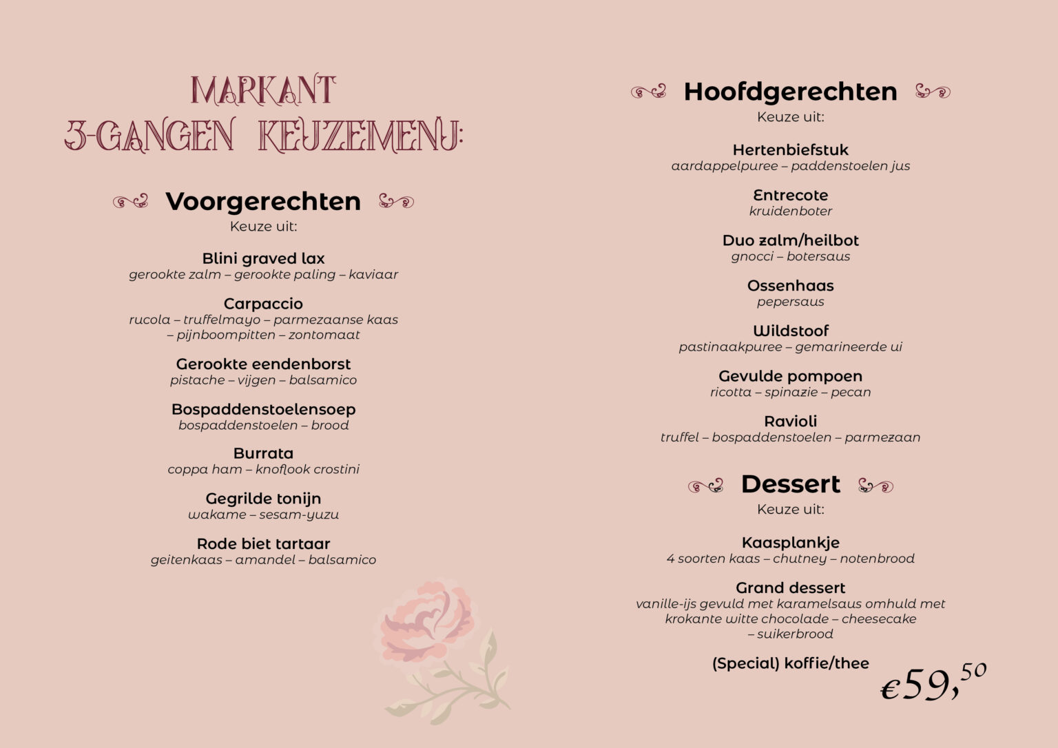Geniet deze kerst van de sfeervolle ambiance van Markant en ons heerlijke 3-gangen kerstkeuzemenu.